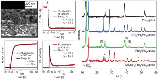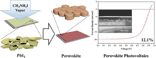 本文描述了一种两步连续沉积工艺在多孔金属氧化物膜内形成钙钛矿颜料。首先将PbI2溶液引入到多孔纳米二氧化钛膜中,然后通过将其暴露于CH3NH3I溶液中使其转化成钙钛矿。研究发现一旦两种组分接触,转化就会在纳米多孔主体内立即发生,这可以更好地控制钙钛矿形态。使用这种技术制造的固态介观太阳能电池极大地提高了其性能可重复性,并能够实现约15%的功率转换效率(在标准AM1.5G测试条件下)。
