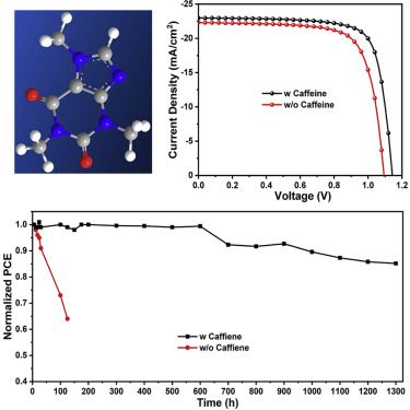 新作:Caffeine Improves the Performance and Thermal Stability of Perovskite Solar Cells(Joule, 2019, 10.1016/j.joule.2019.04.005)